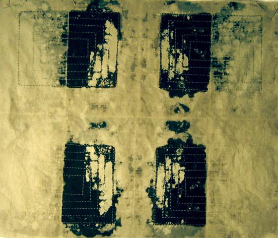 Time and Space No. 1 45 x 38 cm 18" x 15 " 2007© Karin Pfeiff Discharge-dyed cotton stopped with sodium thiosulfate